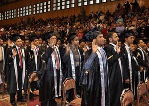 وفي نهاية الحفل أدي دفعة الأطباء الجدد يمين الولاء أمام المحافظ ورئيس الجامعة وقاما بتسليمهم شهادات التقدير والتخرج لأوائل الدفعة والخريجين .