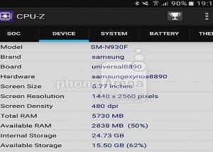 وتكشف الصورة التي أرسلت إلى موقع "سي بي يو زد"، أن الهاتف الجديد سياتي بشاشة قياسها 5.77 إنش بدقة 1440بـ2560 بكسل، بمعدل 448 بكسل بالإنش الواحد، من نوع كيو إتش دي، بالإضافة إلى معالج آكسينوس 8890 وذاكرة وصول عشوائي بسعة 6 جيجابايت وذاكرة داخلية بسعة 32 جيجابايت.